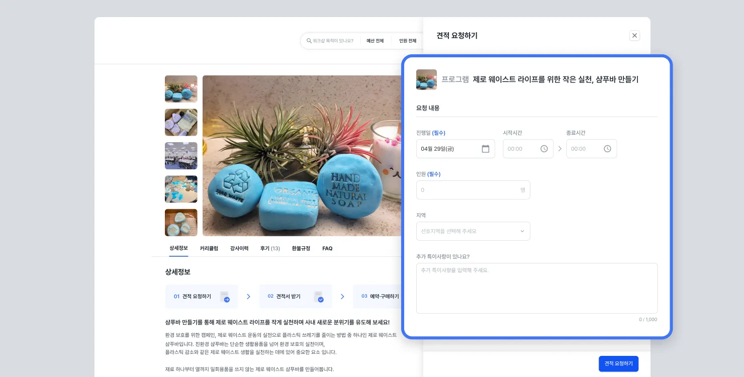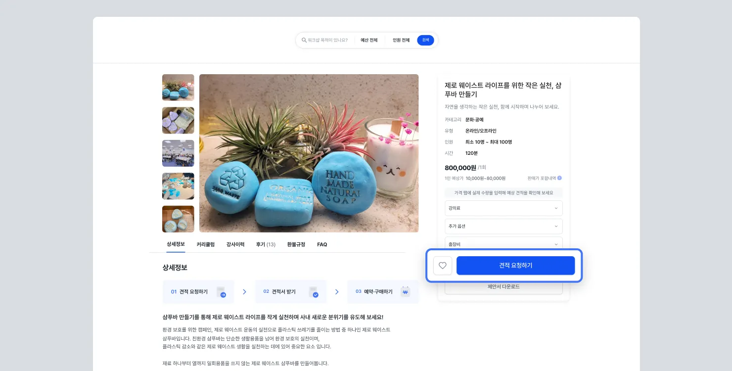 ➊ 상품 상세페이지에서 [견적 요청하기] 버튼을 클릭해 주세요.
