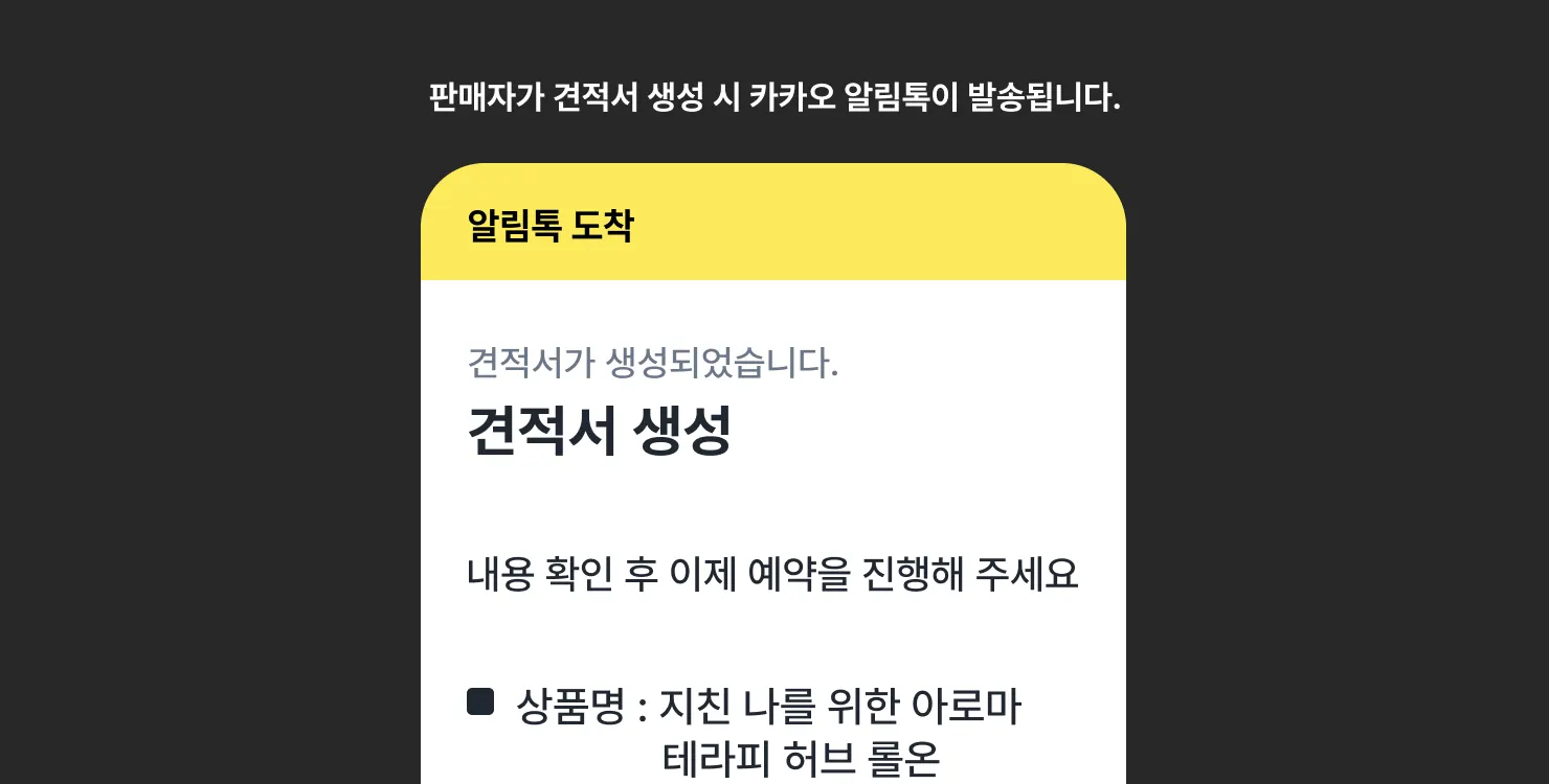 ➊ 판매자가 견적을 보내면 카카오톡으로 알림톡이 발송됩니다.