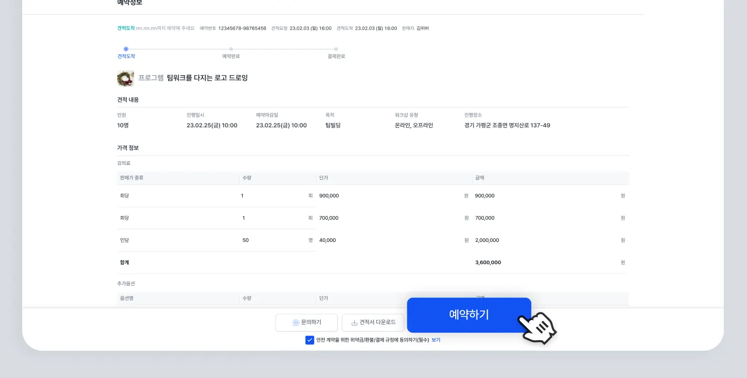 견적서를 전달 받았다면, 예약 마감일 전에 예약해주세요!