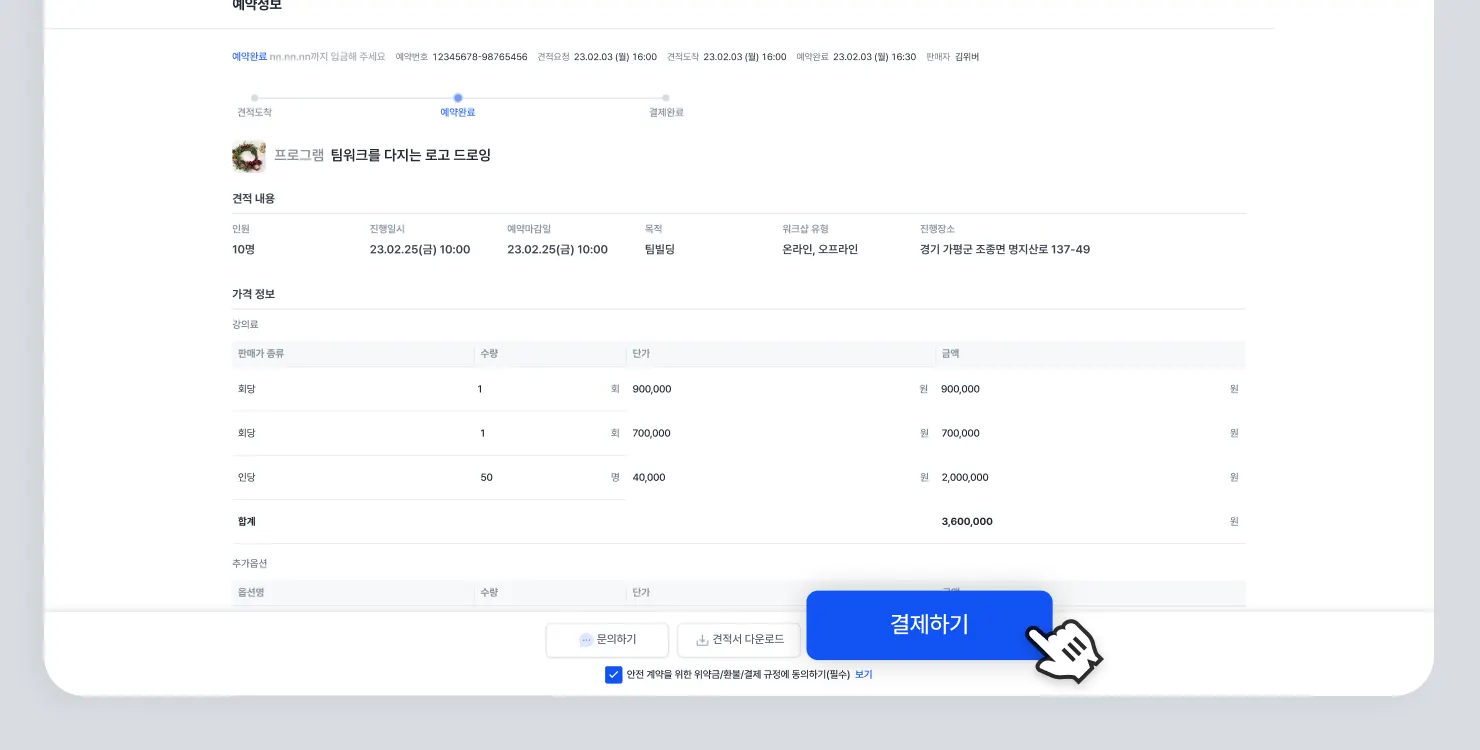 ➊ 견적서 상세에서 [결제하기] 버튼을 클릭해 주세요.